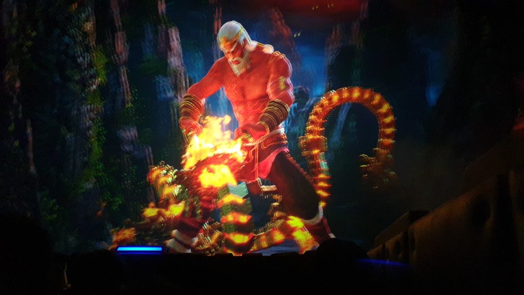 It can get a little repetetive in parts with all the punchy, smashy things going on. There’s onboard audio that contains an ever present pair of buffoons (emulating fellow guests/riders I assume) that are constantly babbling and exclaiming in surprise and panic at literally everything that goes on. Best to tune that bit out if you can. The other thing that bugs me slightly is the amount of times they do slow-mo shots that attempt to emphasise the 3D-ness coming at your goggled face. It’s certainly overdone for how effective this actually is, but the moments are sometimes accompanied by a pyro or two so I end up forgiving it for that.